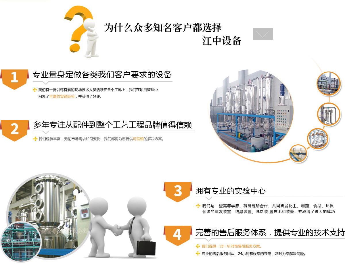 江陰市江中設(shè)備制造有限公司是一家專業(yè)從事蒸發(fā)、濃縮、提取、污水處理等設(shè)備的廠家。廣泛應(yīng)用于制藥、化工、食品、農(nóng)副產(chǎn)品深加 冶金、電子等多個(gè)領(lǐng)域。產(chǎn)品遍及全國(guó)三十余個(gè)省、市、區(qū),并遠(yuǎn)銷(xiāo)歐美及東南亞一些國(guó)家和地區(qū)。公司實(shí)力雄厚,匯聚了一批高層次、高素質(zhì) 的專業(yè)人才,一直致力于產(chǎn)品的開(kāi)發(fā)、生產(chǎn)和管理,并十分注重科技創(chuàng)新,所生產(chǎn)的設(shè)備受到用戶的青睞。